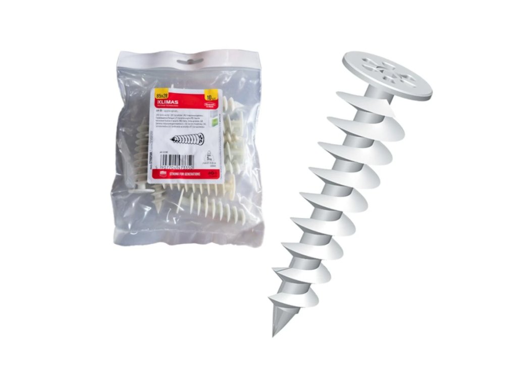 28x85mm Plastové špirálové skrutky do polystyrénu - 10 ks