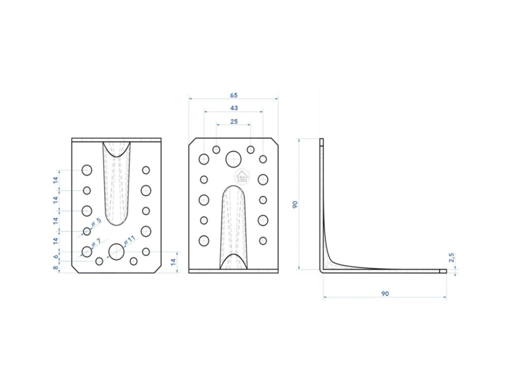 90x90x65x2,5mm KP1 - Uholník s prelisom