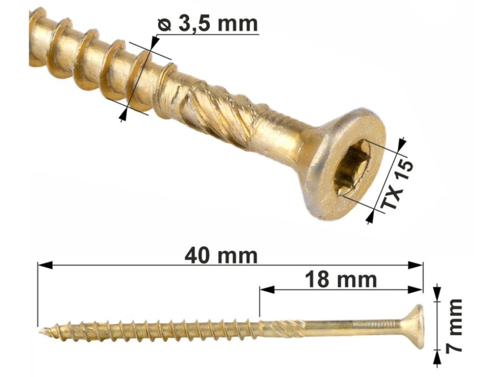 TX 3,5x40mm - 500 ks - Skrutky / Vruty do dreva so zapustenou hlavou, WKCS