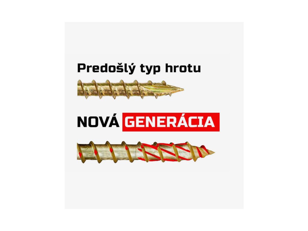 Ďalšie závity na špičke umožňujú rýchlejšie „zachytenie“ dreva s menším tlakom a uľahčuje tak skrutkovanie.