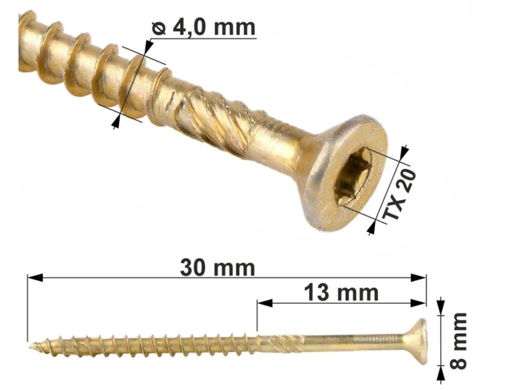 TX 4x30mm - 500 ks - Skrutky / Vruty do dreva so zapustenou hlavou, WKCS