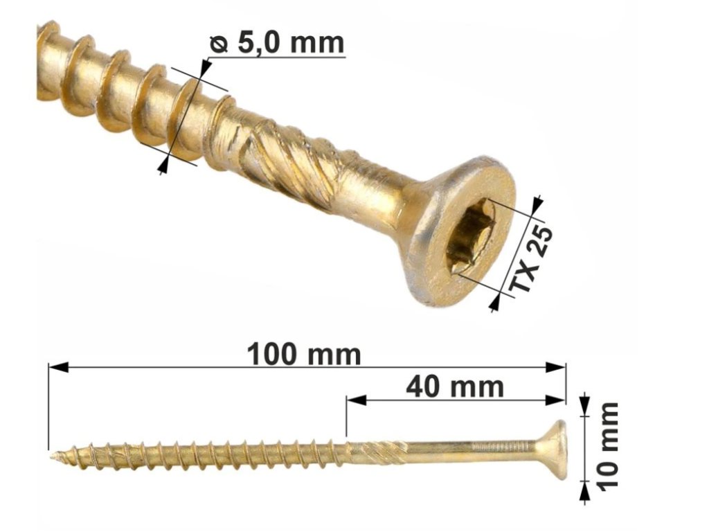 Ďalšie závity na špičke umožňujú rýchlejšie „zachytenie“ dreva s menším tlakom a uľahčuje tak skrutkovanie.
