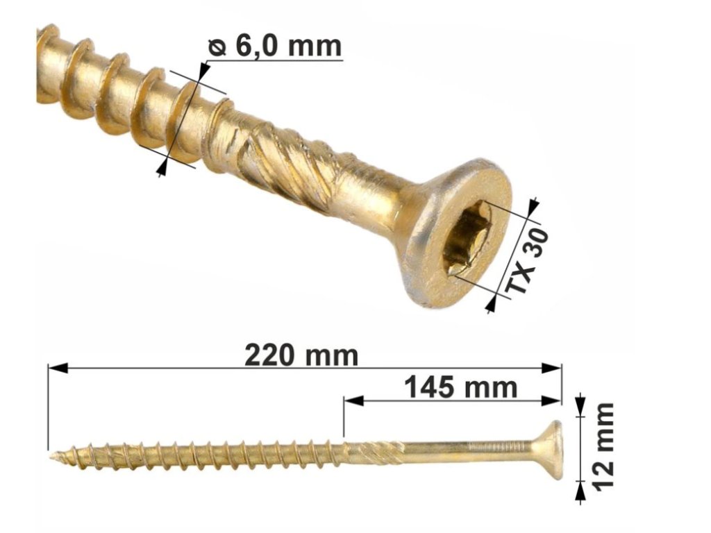 TX 6x220mm - 100 ks - Skrutky / Vruty do dreva so zapustenou hlavou, WKCS