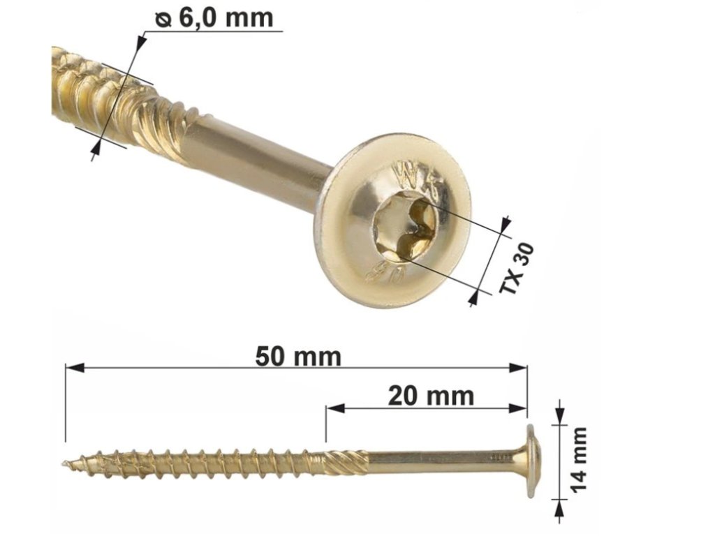 TX 6x50mm - 100 ks - Skrutky / Vruty do dreva s tanierovou hlavou, WKCP
