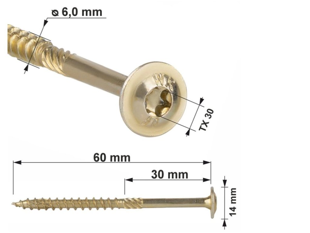 Ďalšie závity na špičke umožňujú rýchlejšie „zachytenie“ dreva s menším tlakom a uľahčuje tak skrutkvanie.