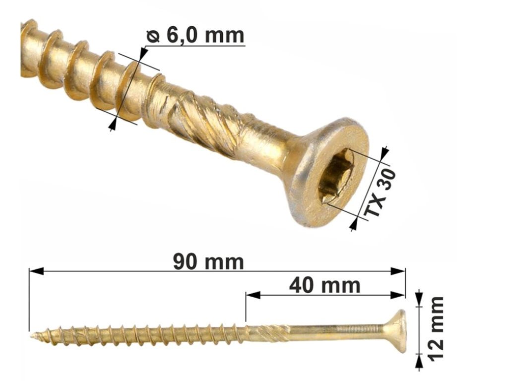 TX 6x90mm - 100 ks - Skrutky / Vruty do dreva so zapustenou hlavou, WKCS