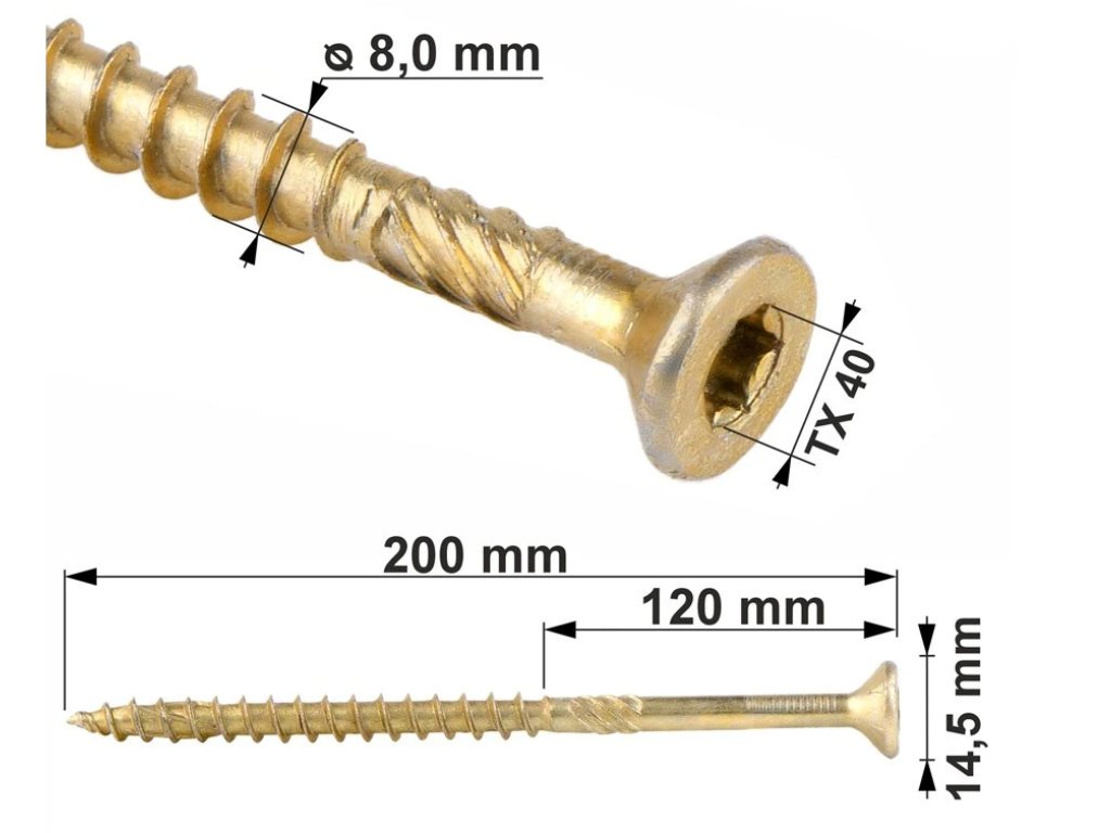TX 8x200mm - 50 ks - Skrutky / Vruty do dreva so zapustenou hlavou, WKCS