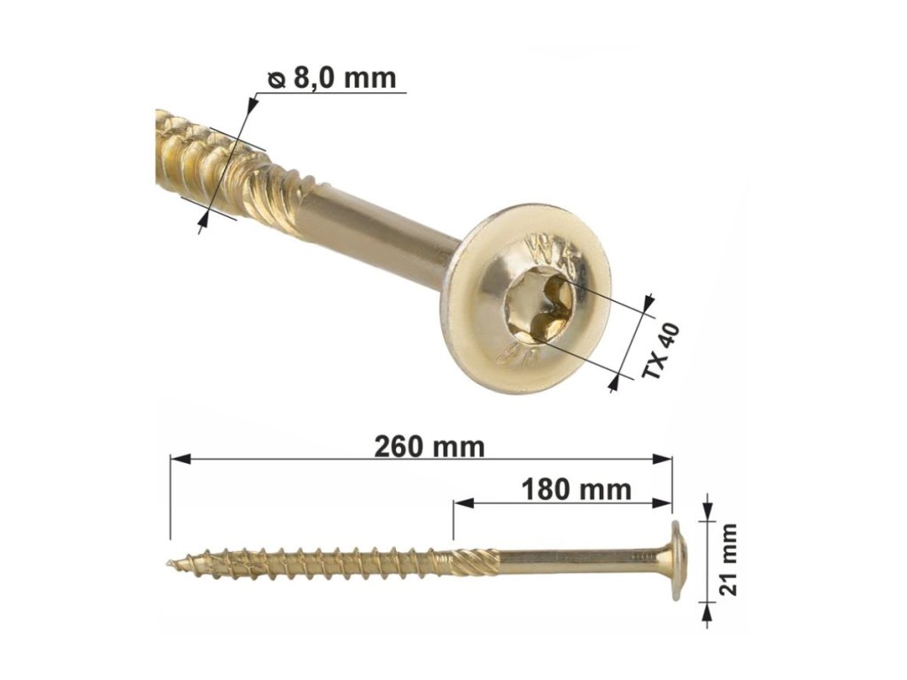 TX 8x260mm - 50 ks - Skrutky / Vruty do dreva s tanierovou hlavou, WKCP