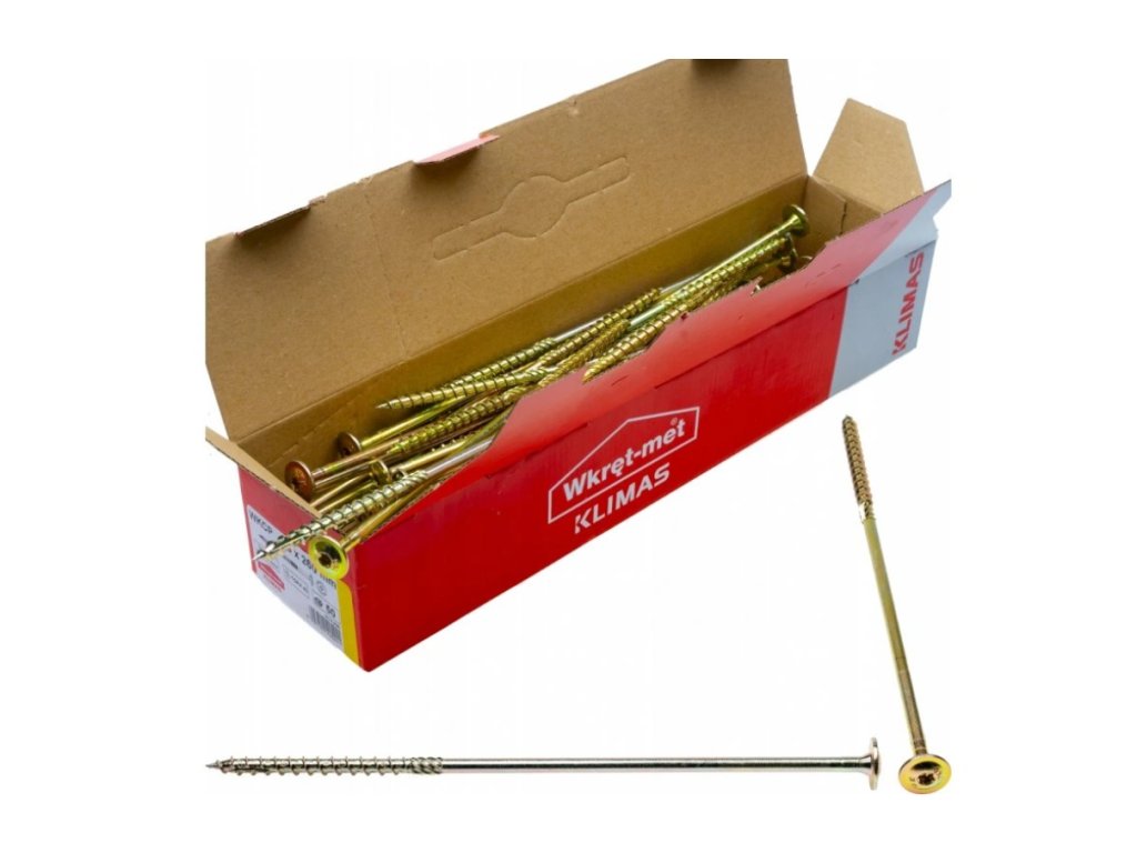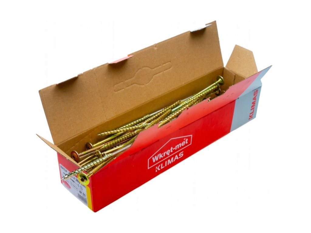 Skrutky renomovanej firmy Klimas Wkręt-met s INOVATÍVNYM DIZAJNOM, hniezdom TORX pre spájanie drevených konštrukcií a iných prvkov ako napr. DTD dosky, preglejka, drevo, MDF dosky, OSB dosky.
