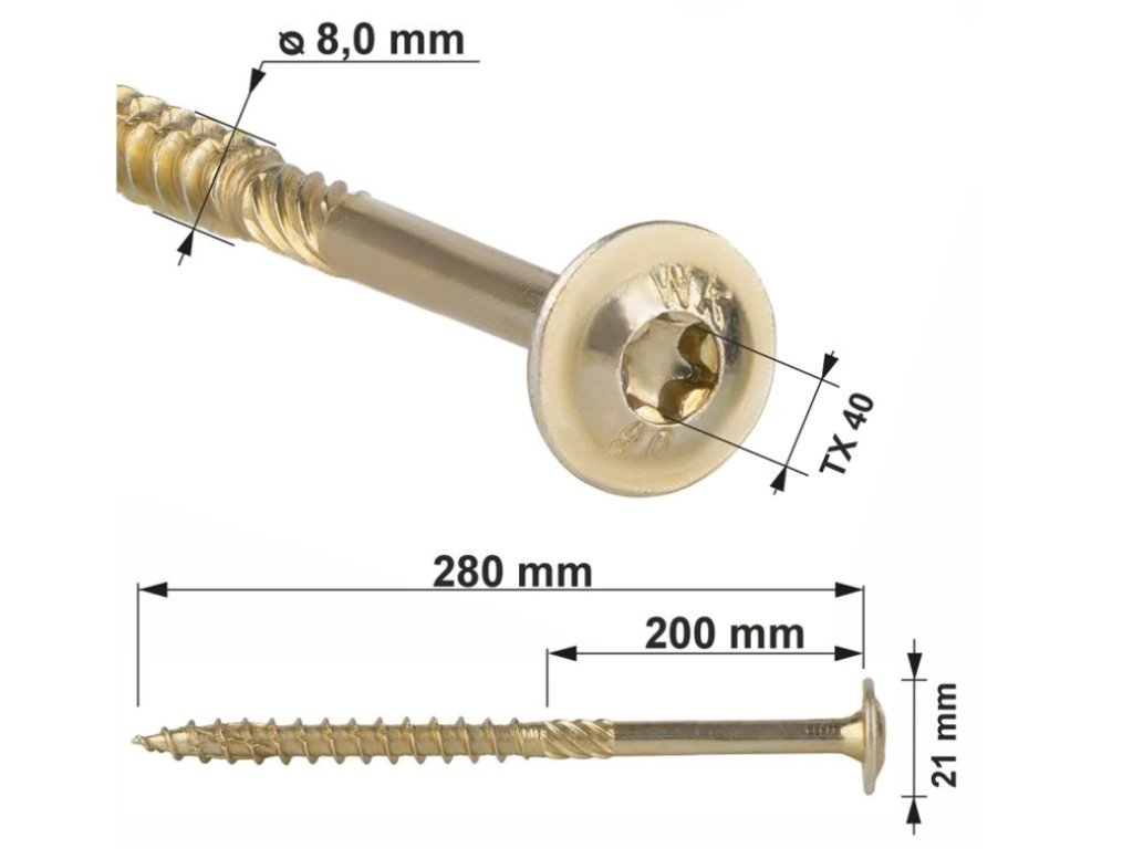 TX 8x280mm - 50 ks - Skrutky / Vruty do dreva s tanierovou hlavou, WKCP