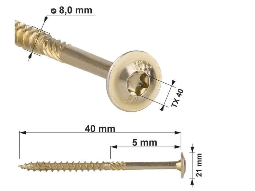 TX 8x40mm - 50 ks - Skrutky / Vruty do dreva s tanierovou hlavou, WKCP